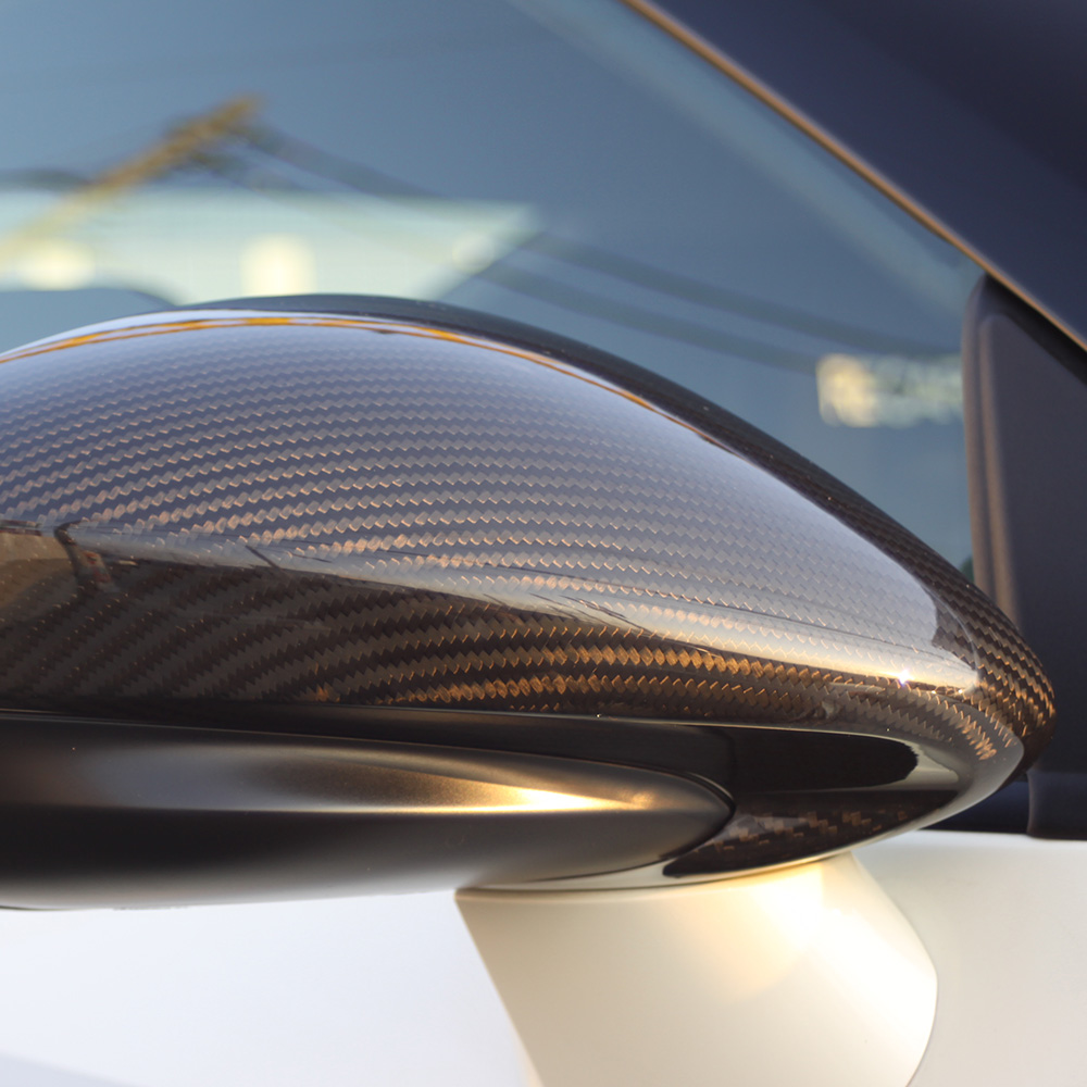 Aerodynamisch optimierte Carbon Spiegelcover für Deinen Nissan GT-R Typ R35 von Mines und Mooncraft. Zur Herstellung der Spiegelblenden wurde hochwertiges Dry-Carbon verwendet.